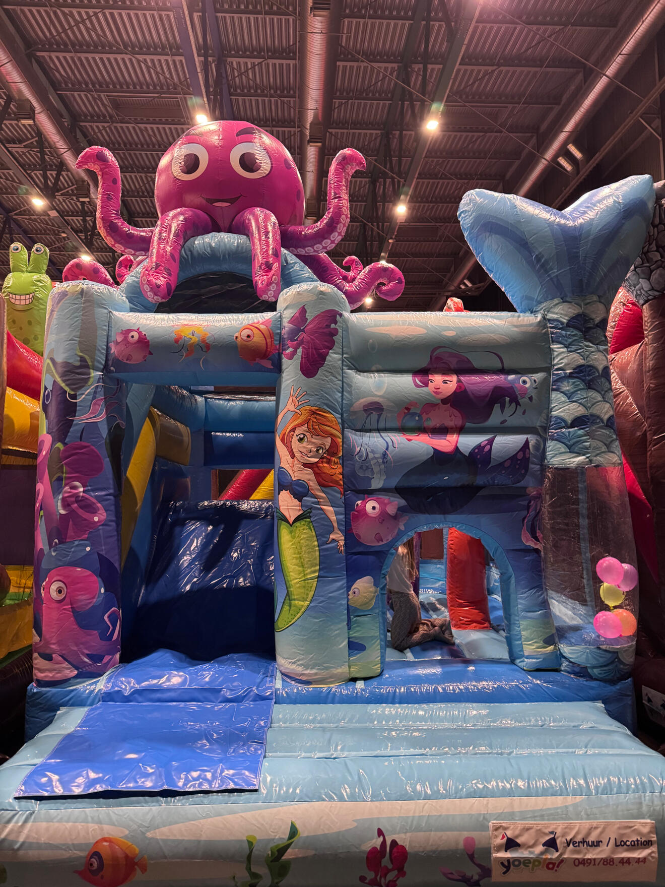 daar vind je wonderen !Het springkasteel is een kleurrijk en magisch speeltoestel .