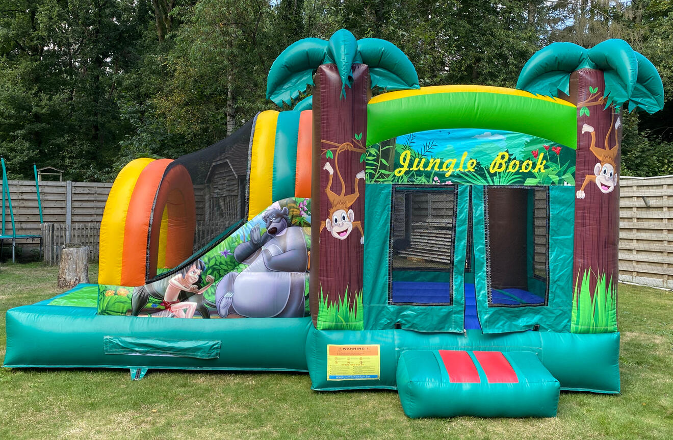 Het springkasteel is ontworpen met leuke afbeeldingen van geliefde personages zoals Mowgli en Baloo en door de bomen heeft het ook wat een uitzicht van een jungle, die kinderen zeker zullen aanspreken.Dit springkasteel biedt niet alleen urenlang plezier en vermaak voor kinderen, maar het stimuleert ook hun verbeeldingskracht terwijl ze zich wanen in de avontuurlijke wereld van Jungle Book. Met zijn leuk springoppervlak kunnen meerdere kinderen tegelijkertijd veilig springen en spelen.Het Jungle Book springkasteel is een gegarandeerde hit bij jonge avonturiers en zal zeker zorgen voor onvergetelijke herinneringen!